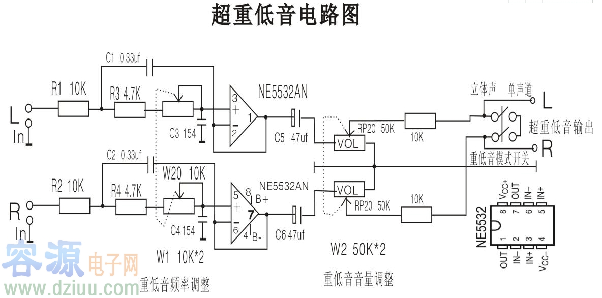 5532單電源超重低音電路圖