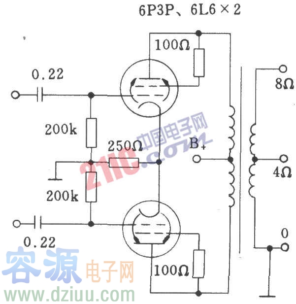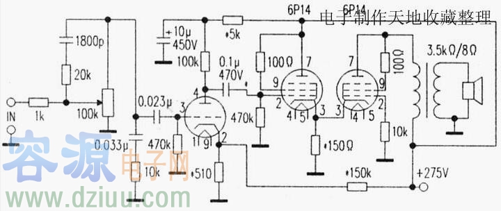 6P3P單端A類電子管功放電路圖