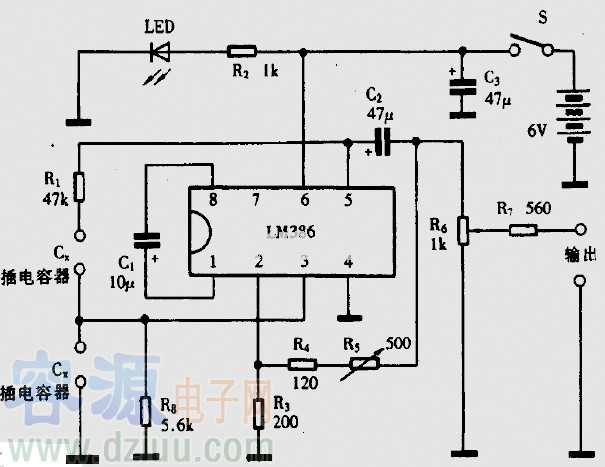 該電路使用了一個很容易獲得的741運算放大器,這個運算放大器是為了大約200的內部增益而設計的。這個運算放大器輸出信號的一部分是被1N4148二極管整流的,然后過濾并反饋到FET輸入分流器電路的門。 :