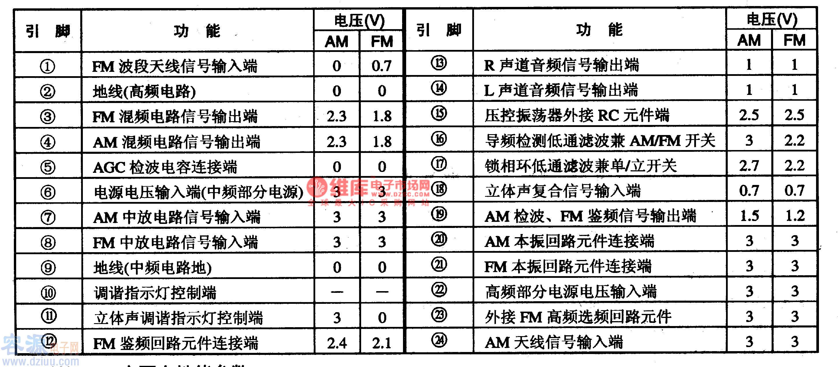 表1-1 KA2292集成電路的引腳功能及數(shù)據(jù)