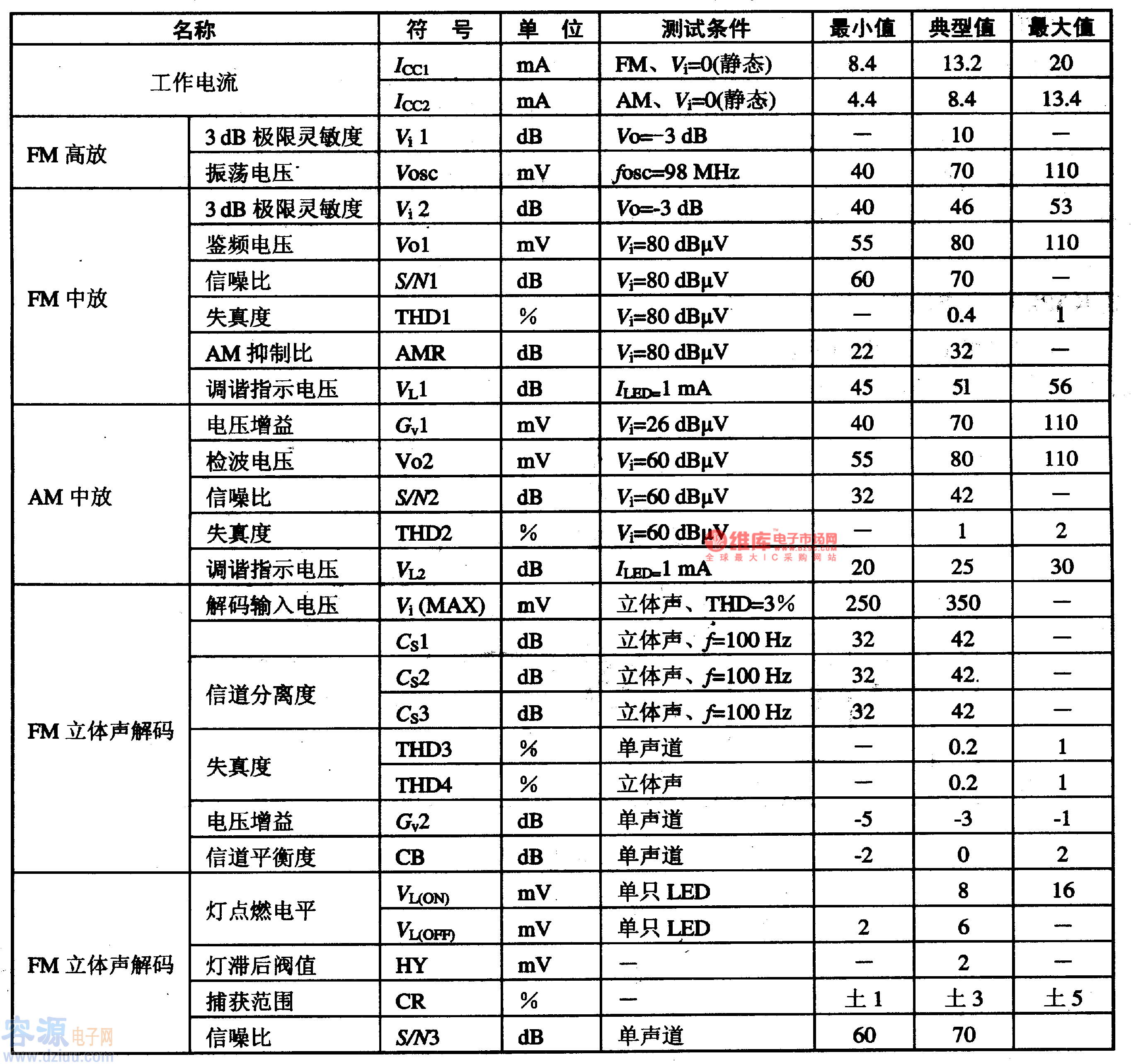 4、KA2292主要電性能參數(shù)