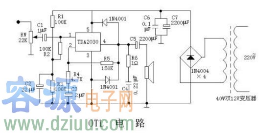 單電源供電音頻放大電路是典型應用電路, 由一塊TDA 2030和較少元件組成單聲道音頻放大電路、裝置調整方便、性能指標好等突出的優點。特別是集成塊內部設計有完整的保護電路,能自我保護。