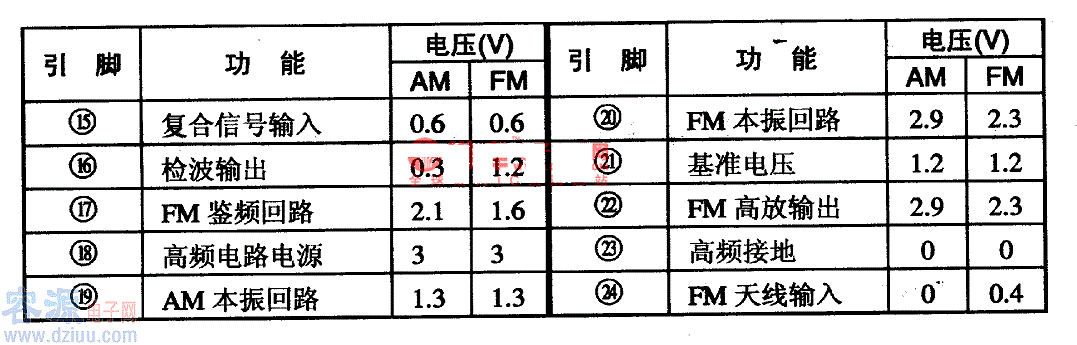 LAl816集成電路有兩種封裝形式,其中:LAl816采用24腳雙列直插封裝;LAl816M采用24腳雙列扁平封裝。這兩種IC的電參數,內電路方框圖,引腳排列及功能一致,只是外形封裝不同。LAl816/M集成電路的引腳功能及數據見表1-1所列。