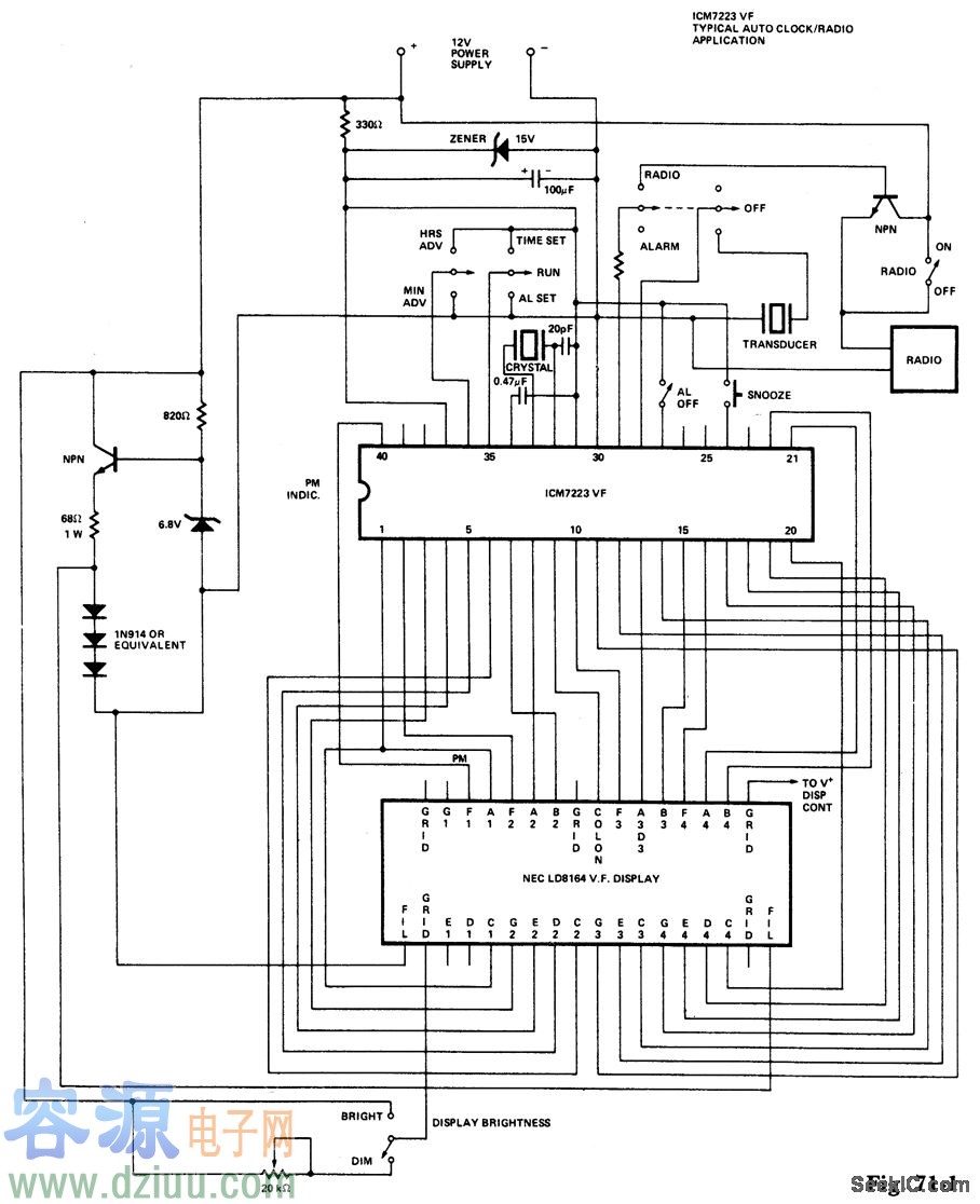 TDA2005S構(gòu)成的20w公共汽車收音機(jī)及擴(kuò)音機(jī)電路