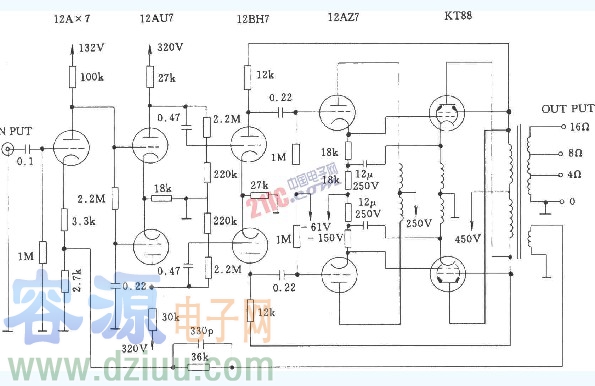 對于電子管OTL功放的輸出級,不是所有功率電子管均能適用。必須選用符合條件的功率電子管才能取得良好的效果。 :