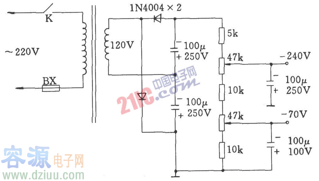 簡單介紹關(guān)于電子管功放的OTL功放電源電路圖