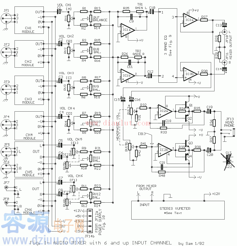多達6個輸入通道的模塊化混頻器音頻電路