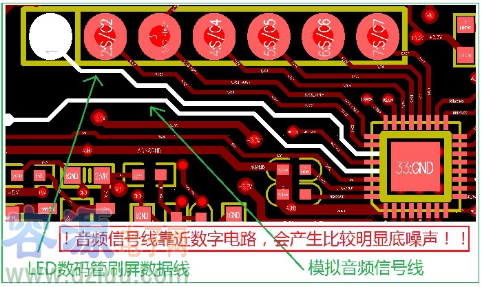 (2). 音頻信號走線盡量遠離數字電路。