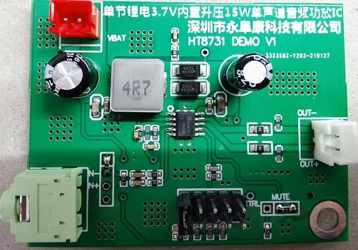 深圳市永阜康科技有限公司針對便攜式藍(lán)牙音箱以及4寸、6寸手提戶外音箱的應(yīng)用需求,推廣一款單節(jié)鋰電池供電內(nèi)置動態(tài)同步升壓5W單聲道音頻功放IC-HT8513。HT8513相比同類競品有三大優(yōu)勢:一是采用高效率的同步升壓,相比非同步效率提高5%,并且外圍不需要肖特基二極管,外圍升壓采用小電感,PCB面積也更小,整機成本更低;二是動態(tài)升壓,芯片內(nèi)部自動檢測輸入音頻信號大小,小信號不升壓,大信號自動升壓,極大延長鋰電池的續(xù)航時間(尤其是中小音量播放時測試,相對恒定升壓音頻功放播放時間延長15%以上);三是相比電荷