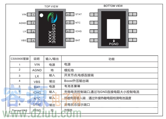 CS5090E是一款USB_5V輸入用于兩節鋰電池串聯8.4V充電管理芯片。內置完整的涓流,恒流,恒壓充電過程。最大的特點是輸入自適應功能,任何大小電流的USB接口都可以正常充電,最大充電電流1.5A。另外,具備各種安全可靠的保護措施以及充電狀態指示,還帶了NTC溫度控制功能。