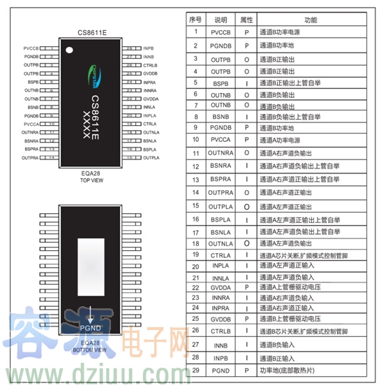 3,音頻功率放大芯片采用CS8611E,在12V電壓提供20W+2×10W功率輸出;