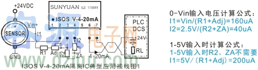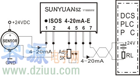 方案6:無(wú)源型低成本、小體積兩線制4-20mA電流環(huán)路隔離調(diào)理變送方案ISO 4-20mA-E(SIP12 Pin封裝)和ISOS 4-20mA-E(SIP7 Pin)兩線制無(wú)源型4-20mA模擬量隔離調(diào)理控制器,可將輸入有源4-20mA電流信號(hào)轉(zhuǎn)換成隔離的無(wú)源控制信號(hào)輸出,用來(lái)控制二線制回路供電(防爆方式)4-20mA電流環(huán)路,實(shí)現(xiàn)傳感器信號(hào)采集與模擬量輸入接口有源負(fù)載的現(xiàn)場(chǎng)匹配,有效解決了采集有源4-20mA電流信號(hào)與二線制電流環(huán)供電回路接收口電源沖突問(wèn)題。該方案采用高效能的回路竊電技術(shù),無(wú)需獨(dú)立電源供電,使用非常方便,用戶可通過(guò)調(diào)節(jié)電位器進(jìn)行ADJ校正。