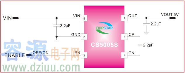 CS5005 無電感電荷泵DC/DC小電流300mA升壓IC