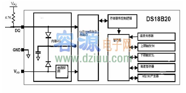 DS18B20是一個數字溫度傳感器,可提供-55至+125度測量范圍,以直接從單線通訊線上汲取能量,除去了對外部電源的