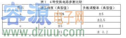 電路分析:(a)將偏置線圈通過限流電阻直接作為TOPSwitchⅡ控制極的輸入;(b)在(a)的基礎上增加了穩壓管,是(a)的增強型;(c)中輸出電壓通過光耦作用于TOPSwitchⅡ控制極,在輸出電壓反饋精度上有所提高;(d)在(c)基礎上增加了精密基準TL431,使得輸出穩壓精度和負載調整率都能獲得較高的精度。4種變換電路的效果如表所示: