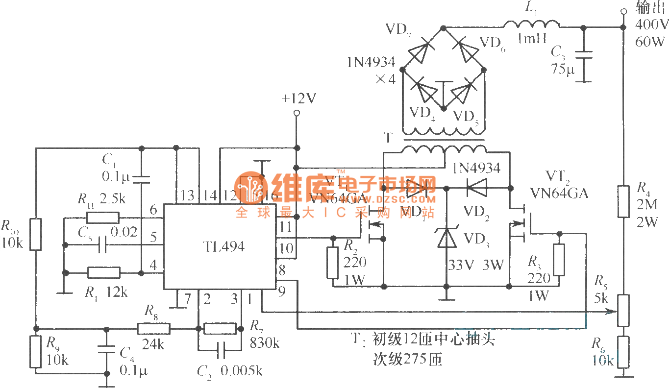 簡單自制tl494逆變器電路圖50hz輸出,大功率