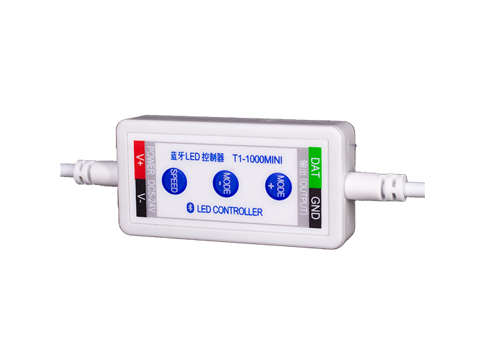 LED全彩簡易控制器:又稱LED全彩迷你控制器,可以控制器LED全彩燈,變換不同的顯示效果。T1-1000MINI LED全彩控制器:對比普通按鍵式的控制器,增加了藍牙連接功能,可實現
