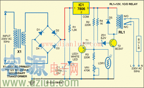 基于7806三端穩(wěn)壓器實現(xiàn)自動燈控制器電路