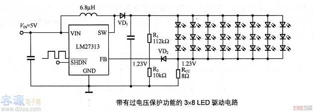• 帶有過電壓保護功能的3×8LED驅(qū)動電路圖 日期:2018-11-19 作者:admin 來源:網(wǎng)絡