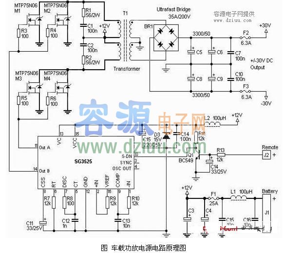車載功放電源電路原理圖SG3525控制