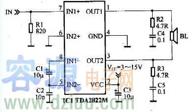 TDA2005S的公共汽車擴(kuò)音機(jī)電路