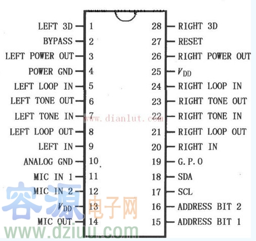 LM4832是單片集成電路,提供立體聲音頻功率放大器、音調(diào)(高音和低音)和音量控制,能夠輸出250mW功率帶動8Ω負(fù)載,或輸出90mW功率帶動32Ω負(fù)載,總諧波失真及噪聲(THD N)低于1.0%。LM4832有兩個輸入話筒前置