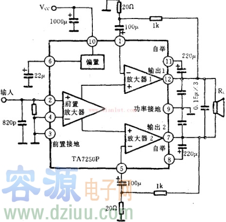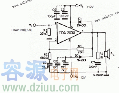 lm380集成功放電路圖:有了這個簡單的電路圖,你可以使用立體聲來驅(qū)動一個8Ω的揚(yáng)聲器。